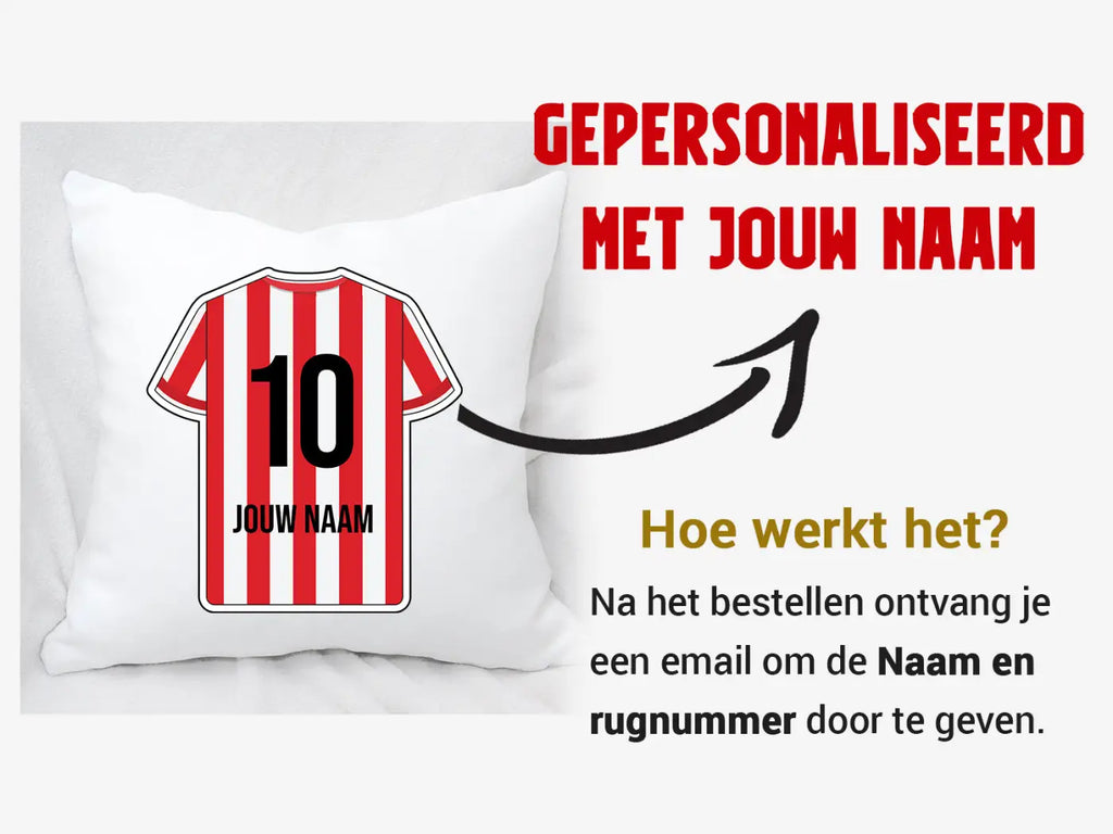 Dankzij de persoonlijke bedrukking met naam maak je van dit voetbal kussen een uniek item. Gebruik het als sierkussen in de woonkamer of als hoofdkussen voor op de kinderkamer – de zachte vulling maakt het kussen comfortabel voor dagelijks gebruik. De kussenhoes is geschikt voor sublimatie en sluit mooi om het kussen heen, zodat jouw ontwerp volledig tot zijn recht komt.